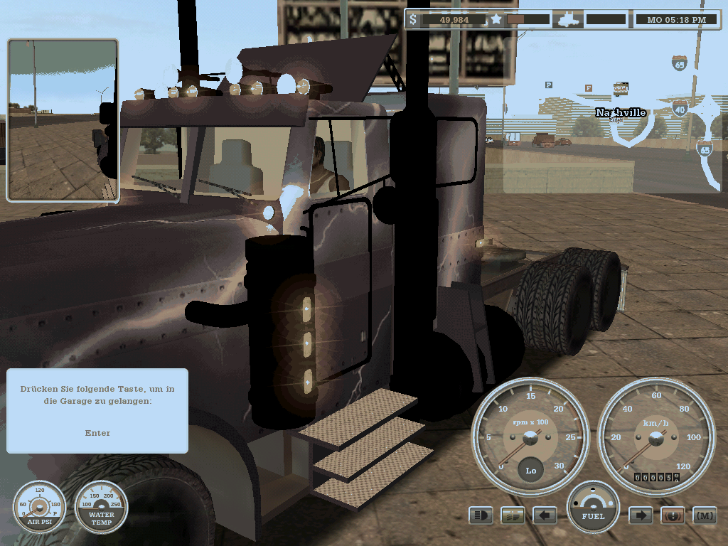 Ein großer Minuspunkt ist die Spieleinführung. Man startet mitten im Spiel, es wird eigentlich gar nix erklärt. Selbst die Steuerung des Trucks muss erst erarbeitet bzw. herausgefunden werden. Im Spieleordner auf der Festplatte verbirgt sich aber eine Html-Datei, die ansich alle groben Fragen klärt. Der Spielspass wurde so gleich zu Beginn auf eine harte Probe gestellt. Allerdings, nachdem die ersten Aufträge ausgeführt wurden, steigt dieser richtig in die Höhe und es entwickelt sich ein regelrechter Suchtfaktor. Letztendlich auch dadurch, dass die eigenen Lkw in der Werkstatt mächtig getunt werden können. Individuelle Lackierungen, Motor, Schaltung, Reifen, Bremsen usw. können je nach Geldbeutel stark verbessert werden.
