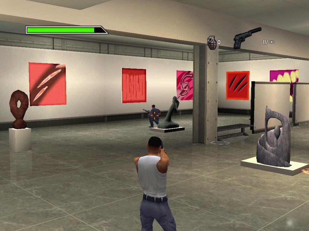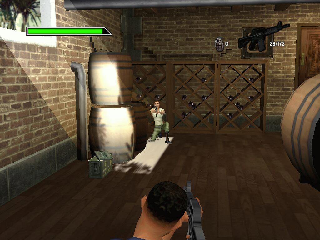 Ebenso unkompliziert (und genauso ab 18 Jahren freigegeben) ist das dazugehörige Spiel. Abwechselnd in der Rolle von Mike oder Marcus kämpft man sich mit Maus und Tastatur durch dreizehn Levels und schaltet Bösewichter aus: Türen eintreten, ducken, losballern.