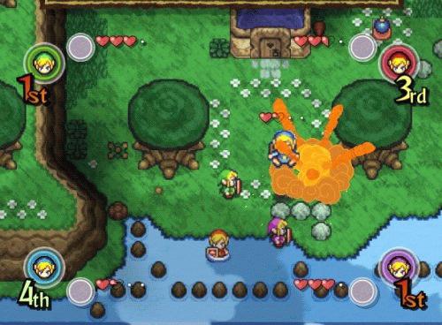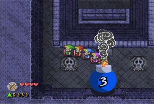 Bis zu drei menschliche Mitspieler können sich in den GameCube einklinken, um einen Link zu steuern, benötigen aber dafür jeweils einen GBA mit Verbindungskabel. Vorteil: Betritt ein Spieler etwa ein Haus, sieht er die Innenansicht auf seinem Game Boy. Neben dem Beseitigen von allerlei Widersachern gibt es jede Menge Rätsel gemeinsam zu lösen.